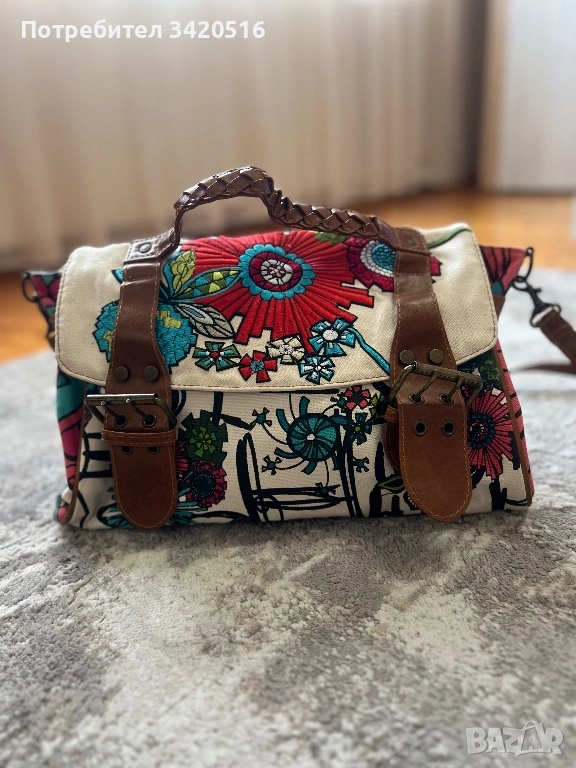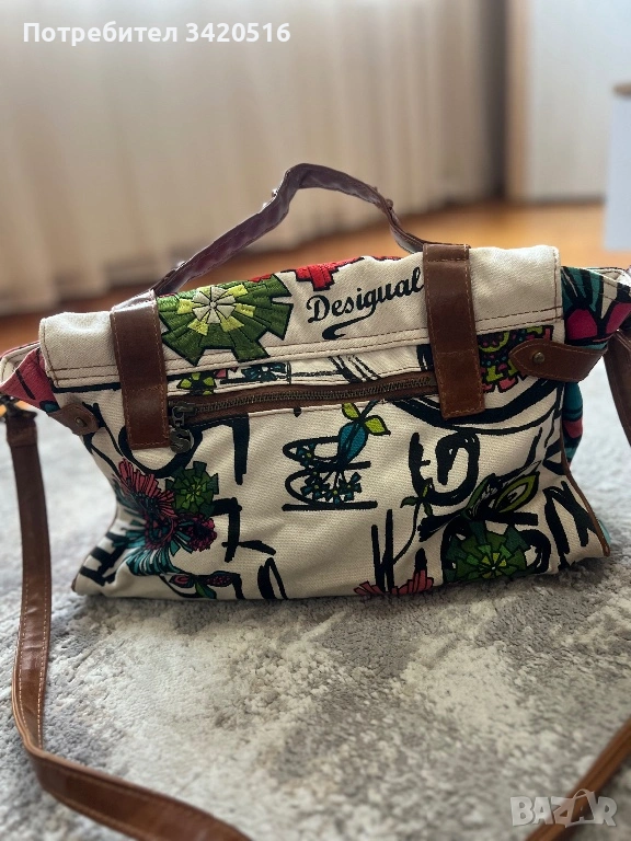 Дамска чанта Desigual в многоцветен дизайн. Чантата е слагана 2-3 пъти, в перфектно състояние. Изпращам по Еконт с преглед