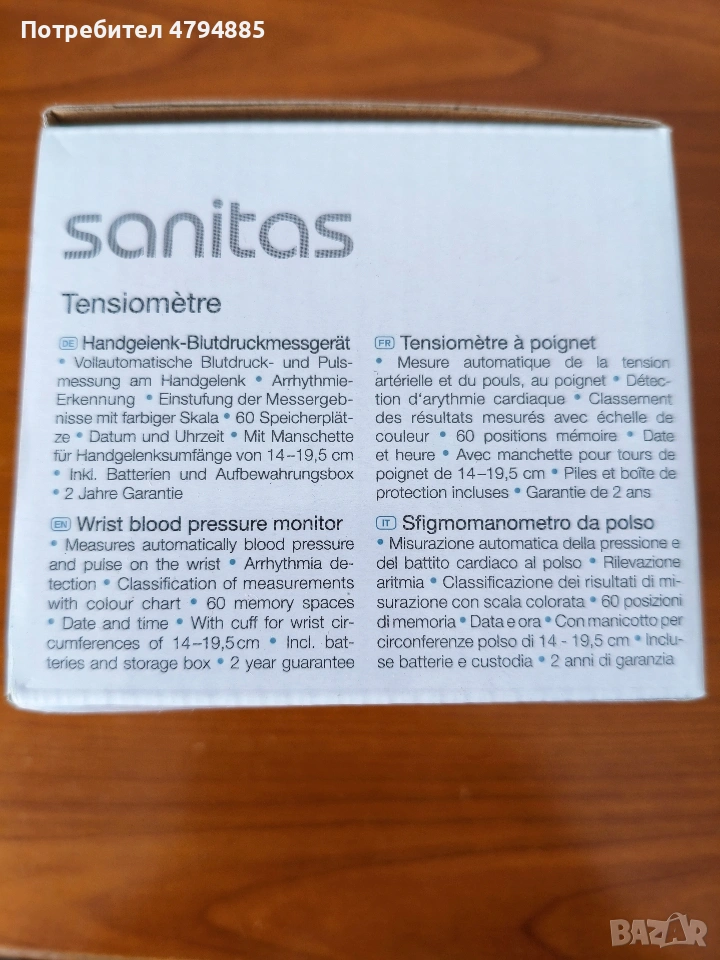 апарат за кръвно Sanitas SMB 03, снимка 1 - Други - 54174107 апарат за кръвно Sanitas SMB 03, снимка 2 - Други - 54174107 апарат за кръвно Sanitas SMB 03, снимка 3 - Други - 54174107 апарат за кръвно Sanitas SMB 03, снимка 4 - Други - 54174107 1/4