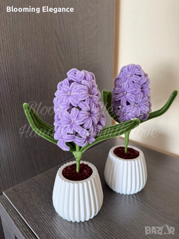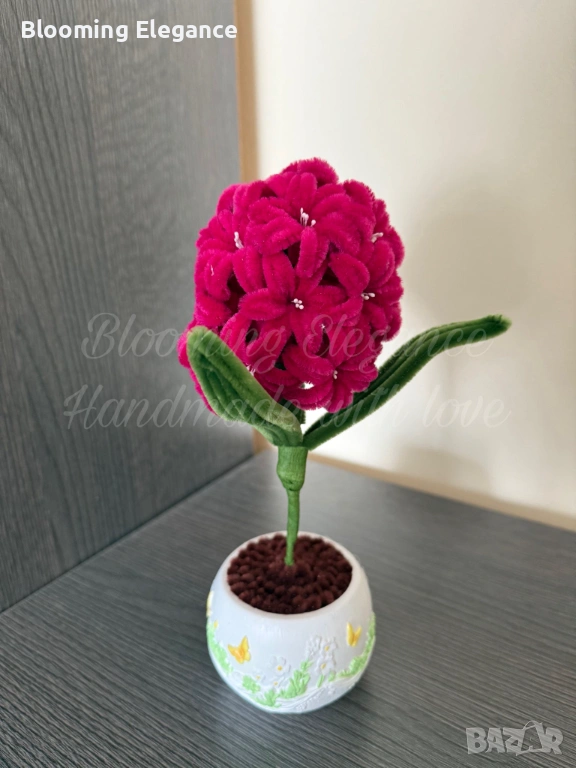 Вечен зюмбюл от плюшена тел в гипсова кашпа → Обява 54174184
