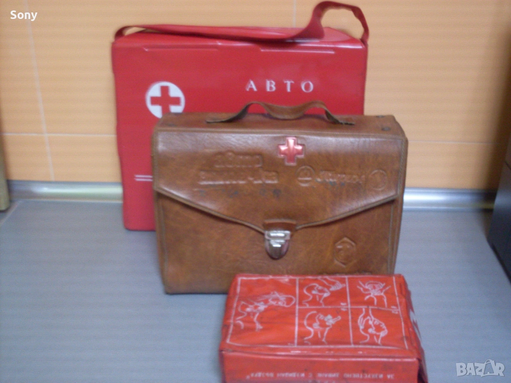 Стари авто аптечки от времето на Соца, подходящи за окомплектоване на Ретро автомобил. Втората- червената- 12евро, за изкуствено дишане с издишан въздух- 6евро.... Договаряне.... Предпочитам лично предаване, по куриер- първо изпращате част от договорената сума.... Изпращам с опция "преглед и тест" и 10% отстъпка от куриерската услуга...