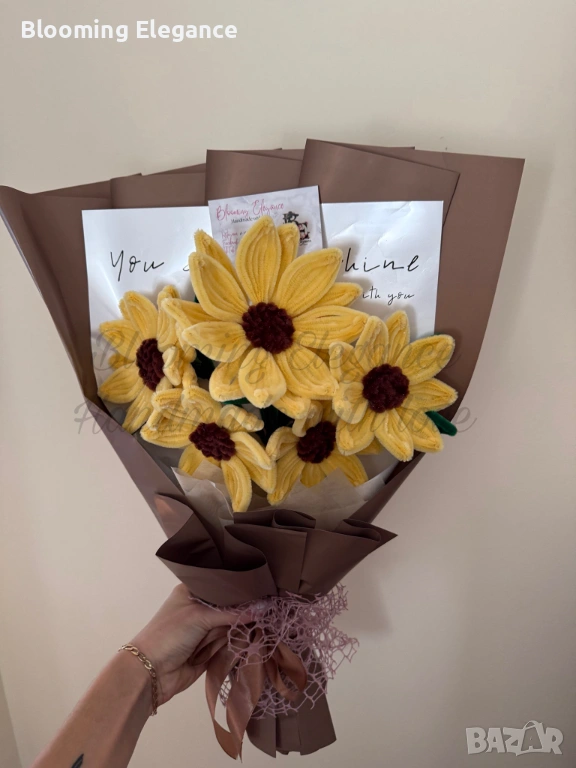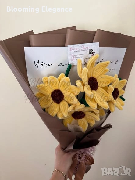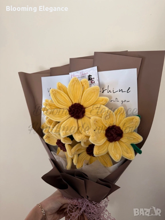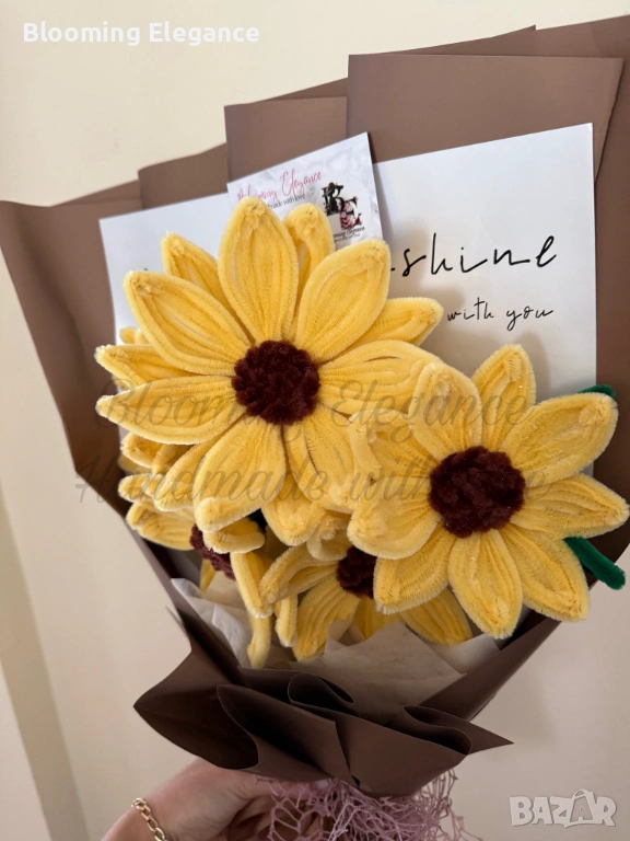 Вечен букет от слънчогледи от плюшена тел → Обява 54174317