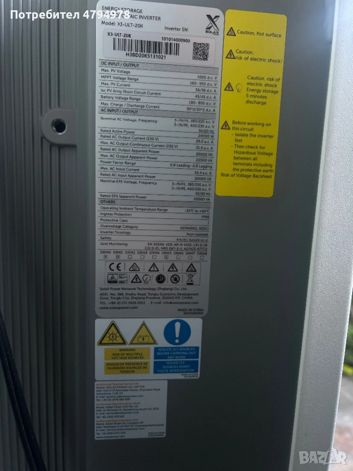 Гаранция на двата продукта: 2 години от вносител и 5(+5) гаранция от SolaX