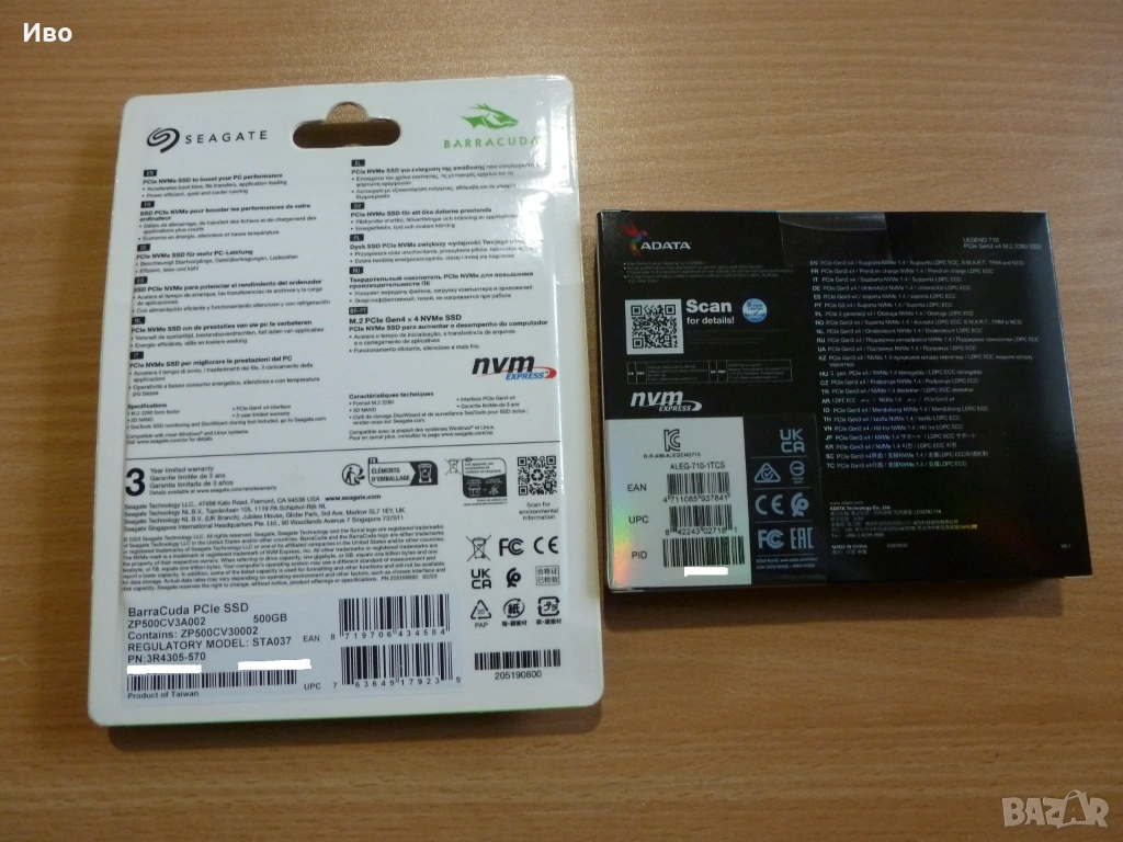 Нови SSD 500 GB Seagate и 1 TB Adata и Samsung 970 Evo Plus, NVMe, с гаранция