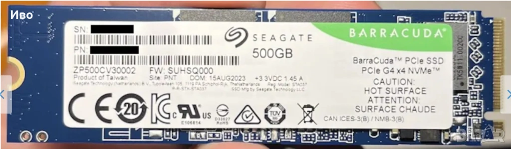 1. Seagate BarraCuda 500 GB, PCIe Gen4 ×4 NVMe 1.4, M.2 2280 - гаранция 3 години