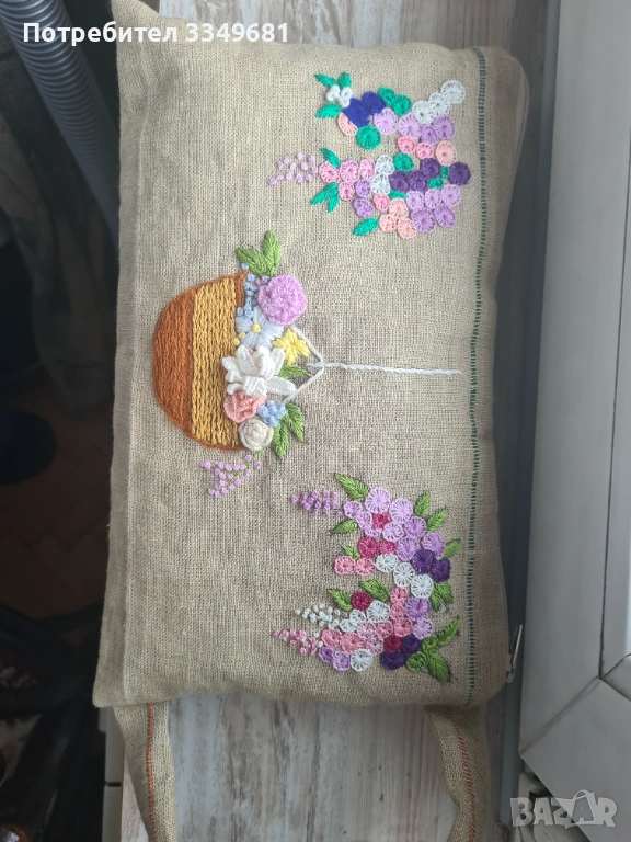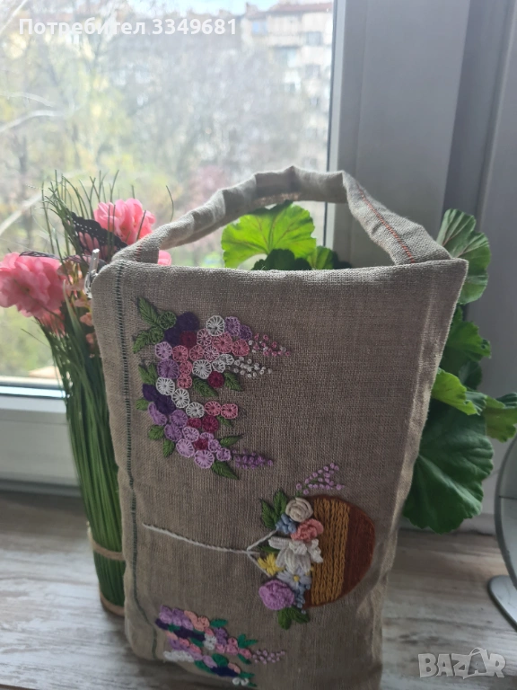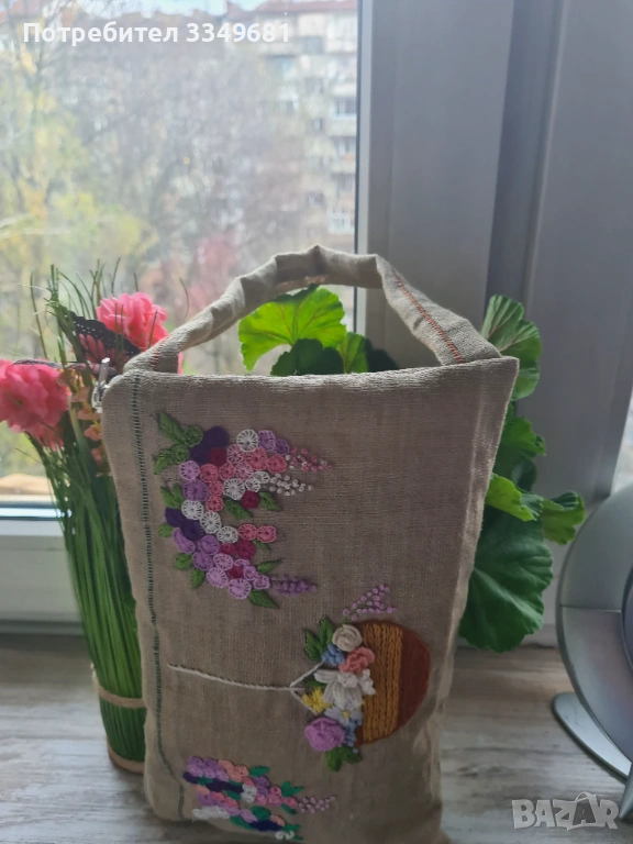 Ленена чанта (плик)с ръчна бродерия → Обява 54174666