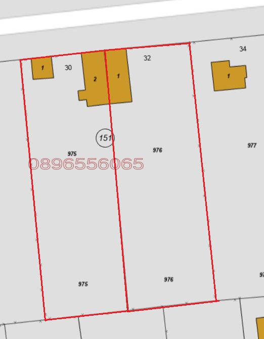 Продавам два съседни поземлени имота. Единият имот е с площ 973 кв.м и на уличната регулация е разположена жилищна сграда с площ от 57 кв.м и сутерен, а другият имот е 996 кв.м и в него е разположен гараж с площ от 53 кв.м, също със сутерен на калкан с жилищната сграда в другия имот. Двата имота имат партиди с трифазен ток. По-малкият имот има партида за вода. И двата имота имат собствени водоизточници (кладенци). Постройките са за ремонт, като конструкцията е от тухлени зидове и стоманобетонни плочи. Строени са 90-те години. Двата имота се продават заедно и цената е за двата.