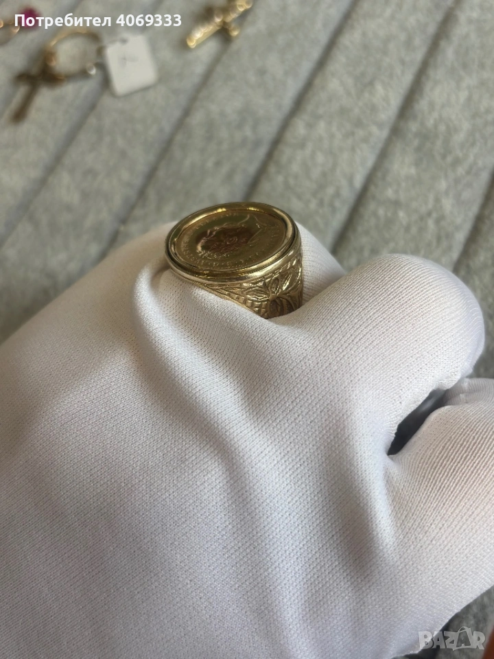 Златен пръстен с монета 11.1 гр 14к → Обява 54175061