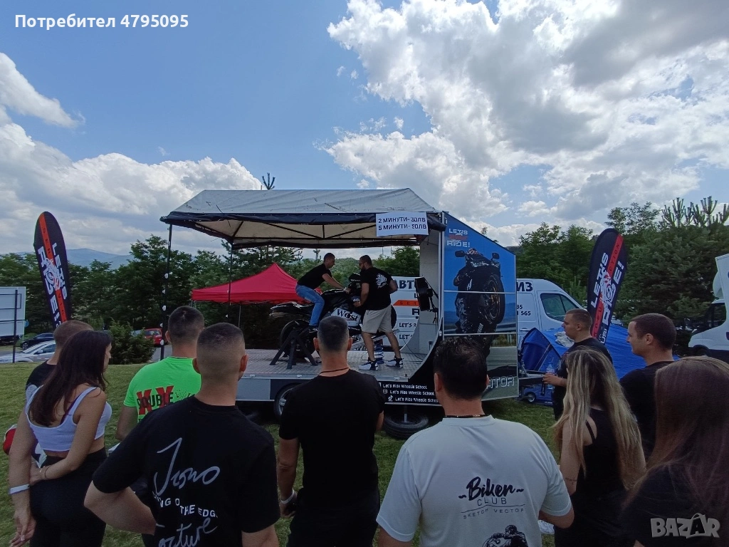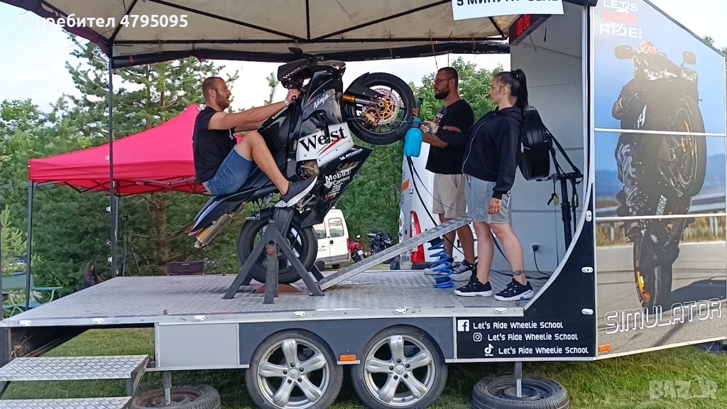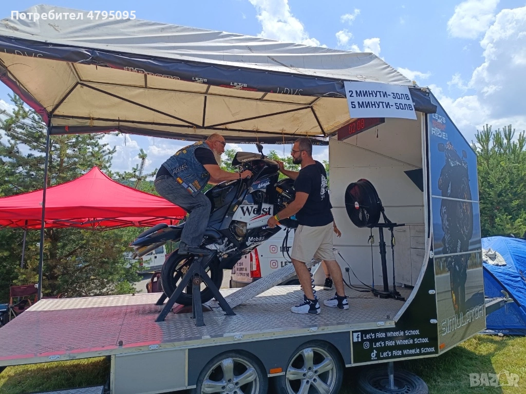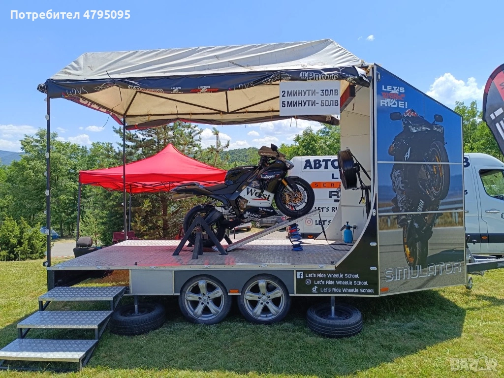 Ремаркето представлява симулатор с мотор за каране на задна гума. Моторът е обезопасен, позволява качването на малки и големи, без никакъв опит с моторите.
