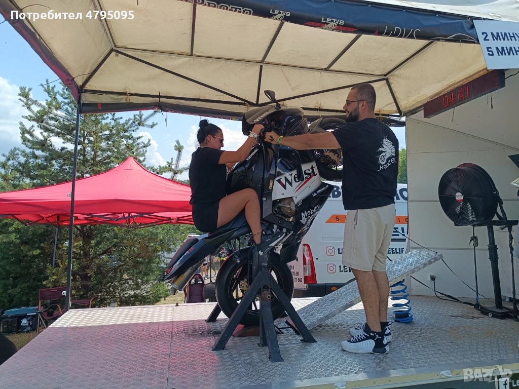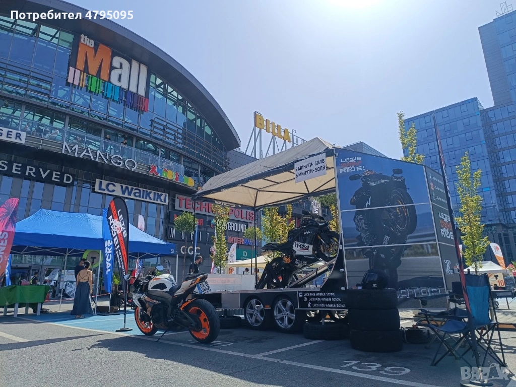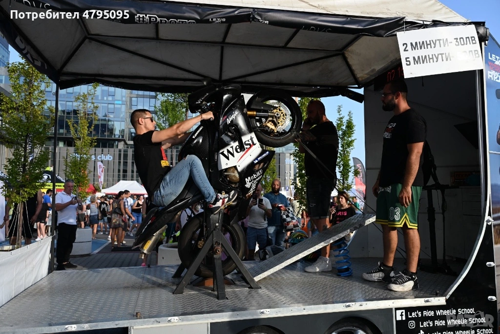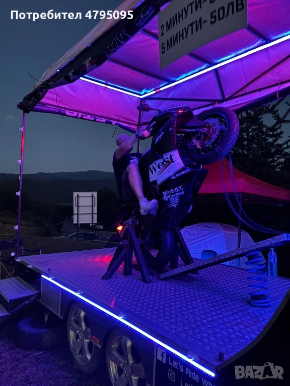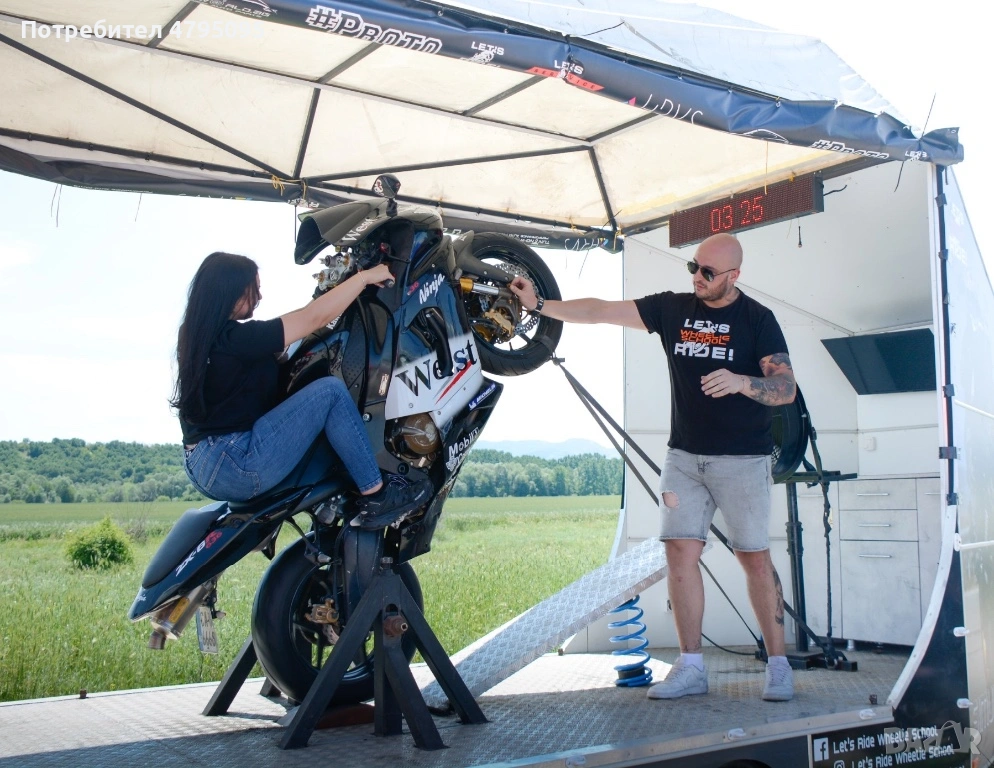 Ремаркето представлява симулатор с мотор за каране на задна гума. Моторът е обезопасен, позволява качването на малки и големи, без никакъв опит с моторите.