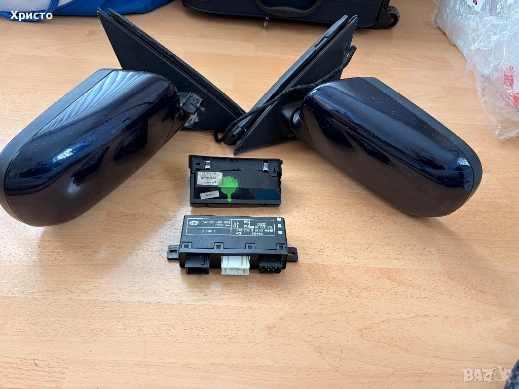 Продавам електрически прибиращи се странични огледала за БМВ Е39, заедно с всички модули към тях (шофьорска и пасажерска врата). Готов комплект за “retrofit”. Огледалата са в отлично състояние, боята на капаците е перфектна, няма счупено, като всички щипки на капаците са здрави. Огледалата са тествани и се прибират перфектно. Изпращам видео при поискване. Цвят Orient Blau Metalic. Огледалата имат нагреватели и кабели за хелиоматика. Продават се без стъкла. Огледалата не са рециклирани (не са отваряни)