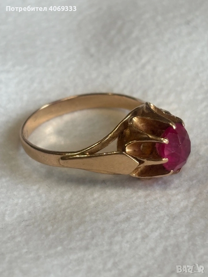 Руски златен пръстен с рубин 3.9 гр 14к → Обява 54175472