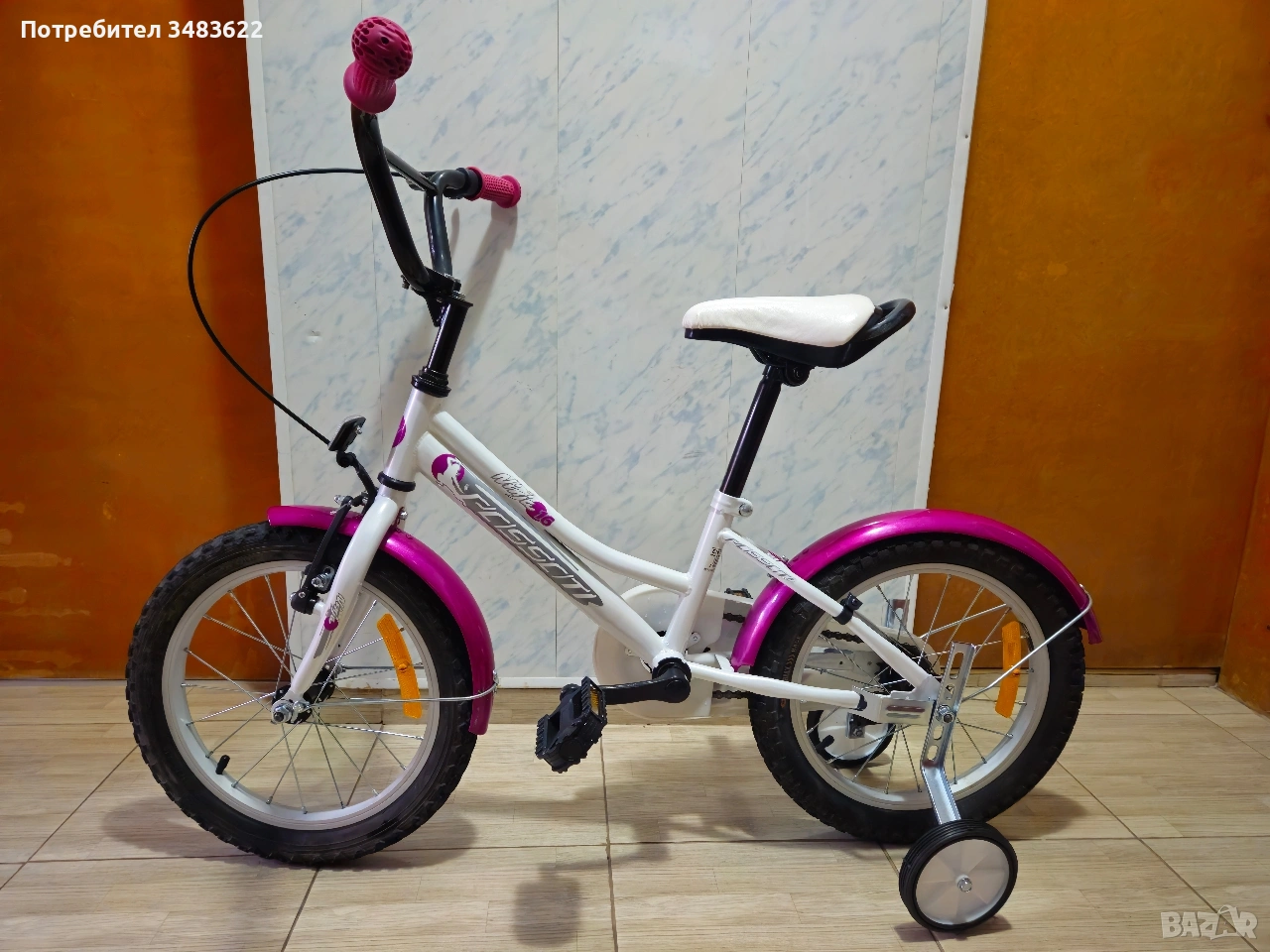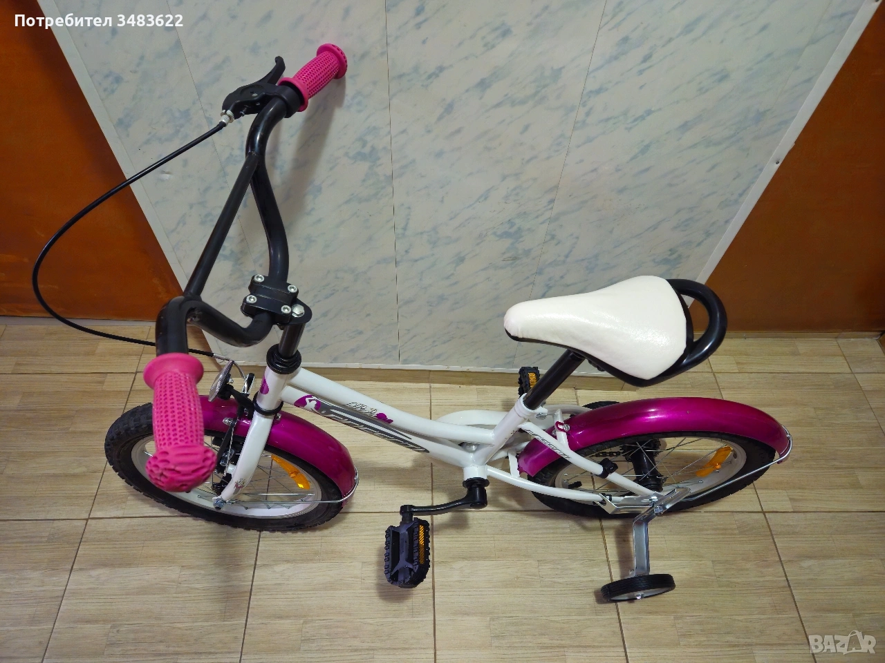 Детско колело/велосипед Passati Ninja 16 цола. Алуминиеви капли. Предна спирачка и контра. Нови педали, нова седалка, нови помощни колелца. Гр. Стара Загора Цена 60€