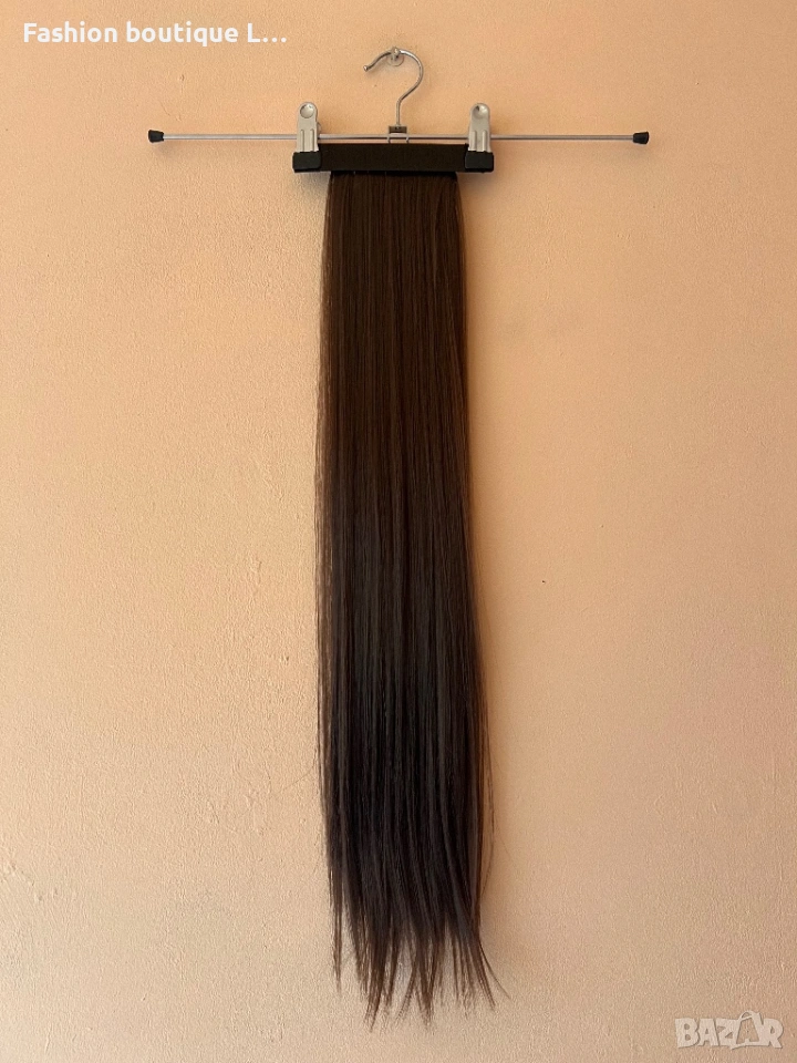 Тъмно кестенява нова коса тип екстеншън на конска опашка 60 сантиметра 100 грама може да се къдри ❤️ → Обява 54175626