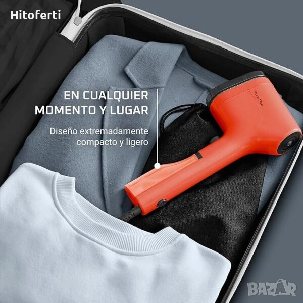 - Нежно изпаряване: погрижете се за всичките си дрехи с кадифената страна на обръщащата се глава, която осигурява нежно изпаряване без риск от повреда и отблясъци на дрехите ви. Има резервоар за вода с капацитет 70 мл