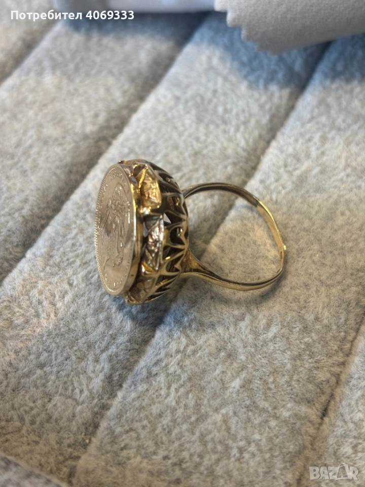 Златен пръстен с монета 8.76гр 14карата(585) → Обява 54175756