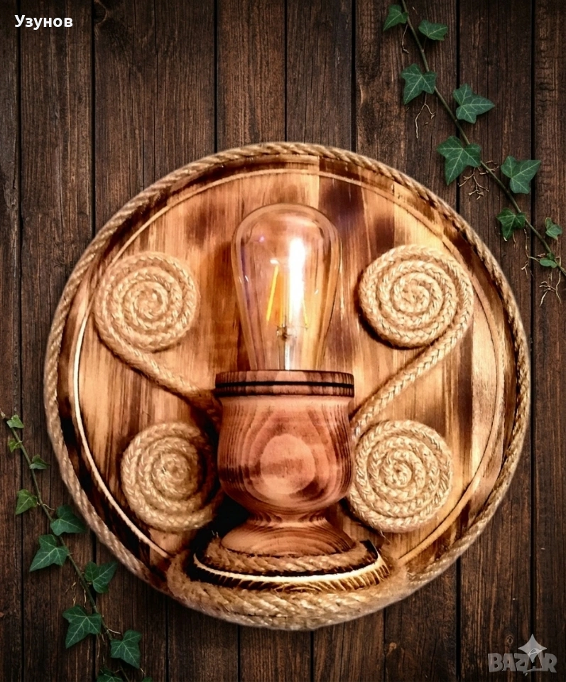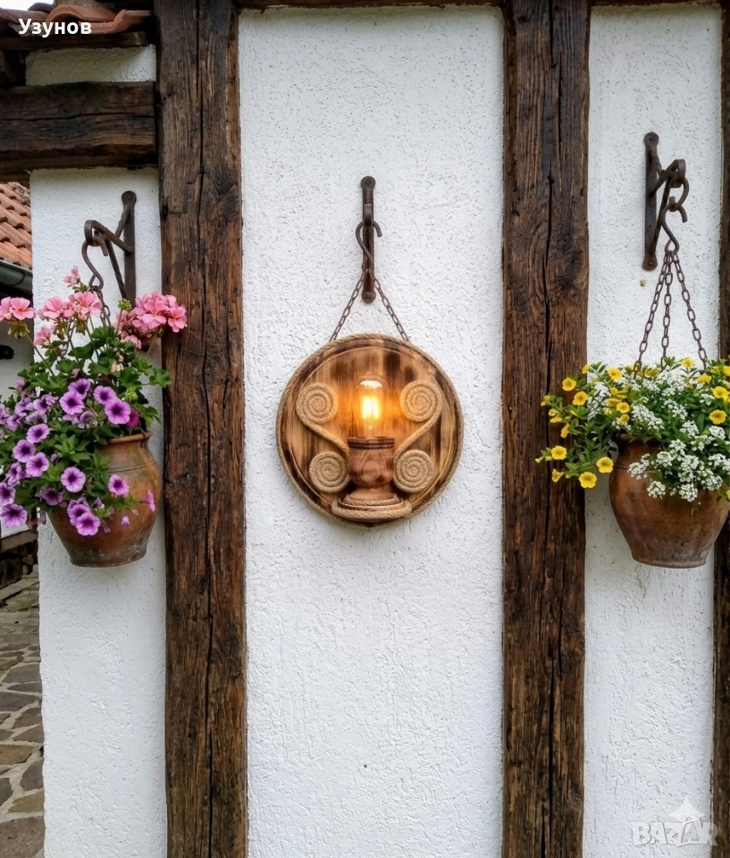 Ръчно изработена стенна, дървена лампа в битов/винтидж/рустик стил - осветление за механа., снимка 1 - Лампи за стена - 54175935 Ръчно изработена стенна, дървена лампа в битов/винтидж/рустик стил - осветление за механа., снимка 2 - Лампи за стена - 54175935 Ръчно изработена стенна, дървена лампа в битов/винтидж/рустик стил - осветление за механа., снимка 3 - Лампи за стена - 54175935 1/3