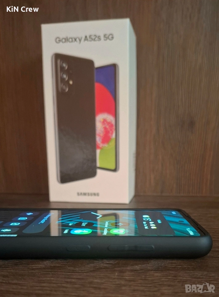 Samsung Galaxy A52s 5G, в отлично състояние, с минимални следи от употреба (видими на снимките).