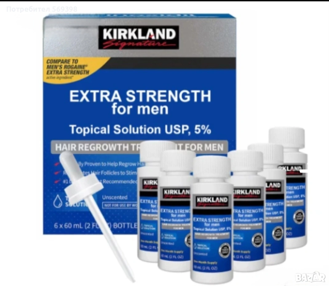 Киркланд Миноксидил 5% за мъже – Разтвор за локално приложение (6 x 60 мл) → Обява 54175985