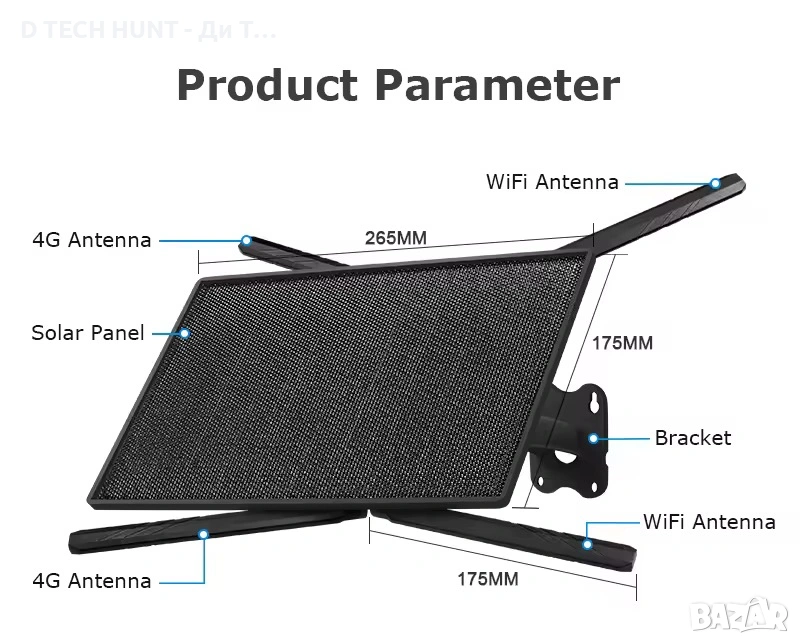 Соларен панел + вградена батерия – работи автономно без нужда от захранване.