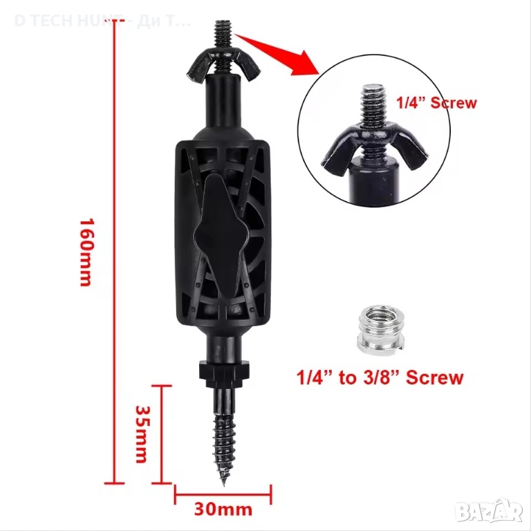 стойка със свредло (винт) за ловни камери и соларни панели.
