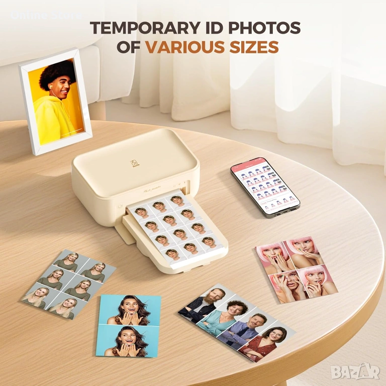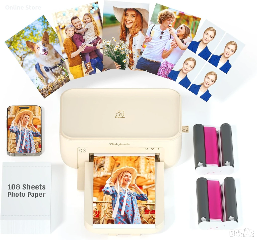 Компактен и удобен фото принтер за бърз печат на красиви снимки директно от телефон. Работи с термосублимационна технология за наситени цветове, чист детайл и дълготрайни резултати, а защитният слой пази снимките от вода, прах и отпечатъци. Отличен избор за семейни спомени, пътувания, подаръци и всеки, който иска качествени снимки у дома. Моделът е с английски щепсел, като предлагаме европейски преходник на цена 2 евро.