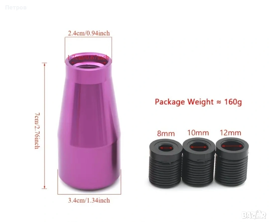 Топка за скоростен лост Цветът, е на първата снимка! На втората са само размерите! Вижте внимателно размерите и си преценете!!!