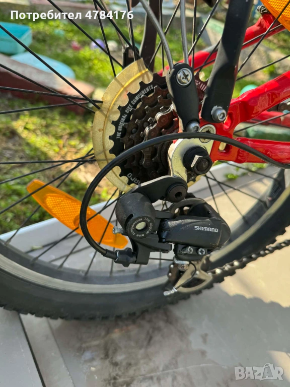 6-степенна трансмисия Shimano с въртящи се команди (Grip Shift) и V-образни спирачки.