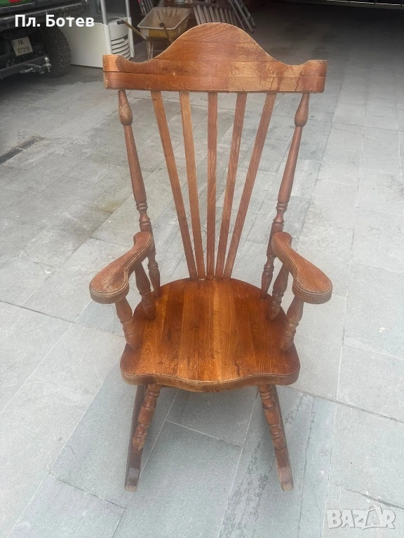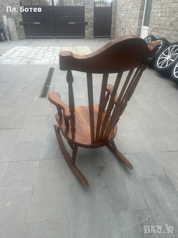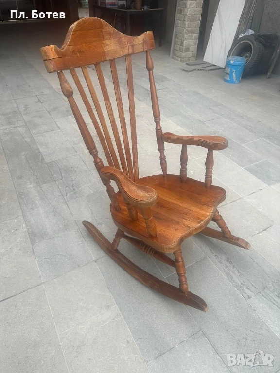 Продавам красив и здрав люлеещ стол от масивно дърво с класически дизайн. Столът е стабилен, с удобни подлакътници и висока облегалка, подходящ както за дом, така и за вила, тераса или двор.