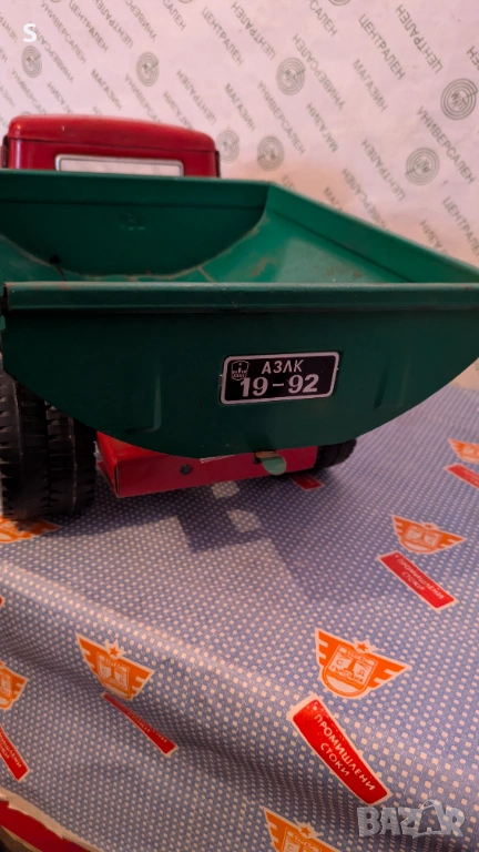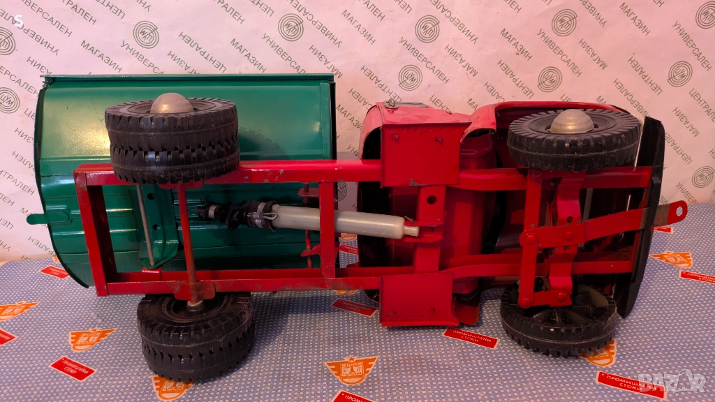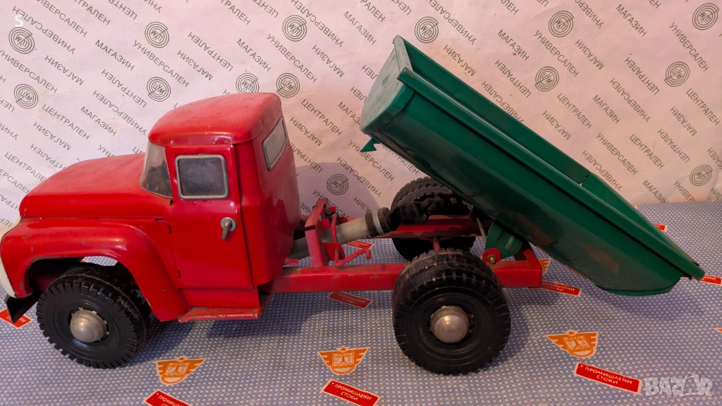 Произведена в СССР играчка ,изработено от желязо , дължина между 0.53 - 0,54 см . Този модел е произвеждам от 1982 г до 1994 г е последния произведен . Вратите се отварят , механизма за дигане на лигена работи. Също може да се отваря и задния капак . Цената не се коментира ,