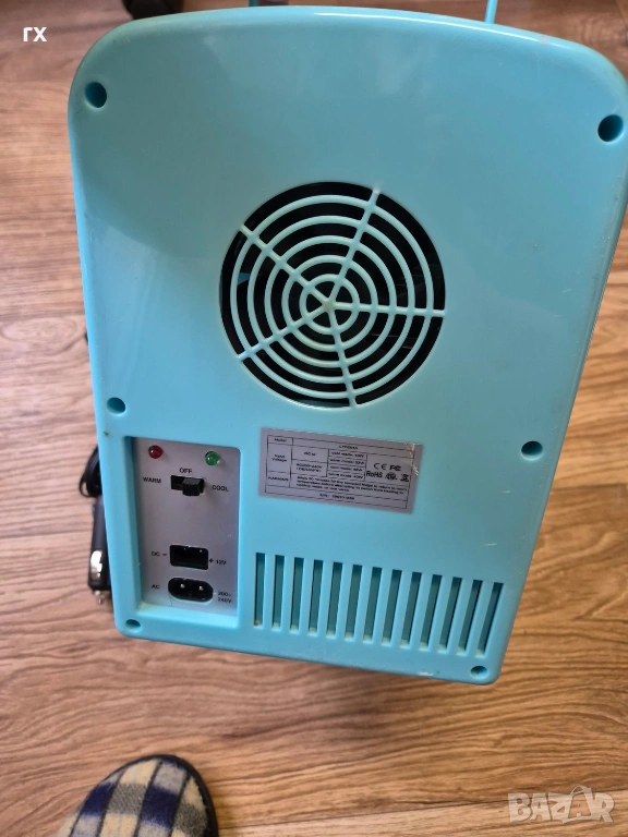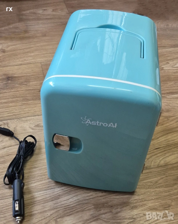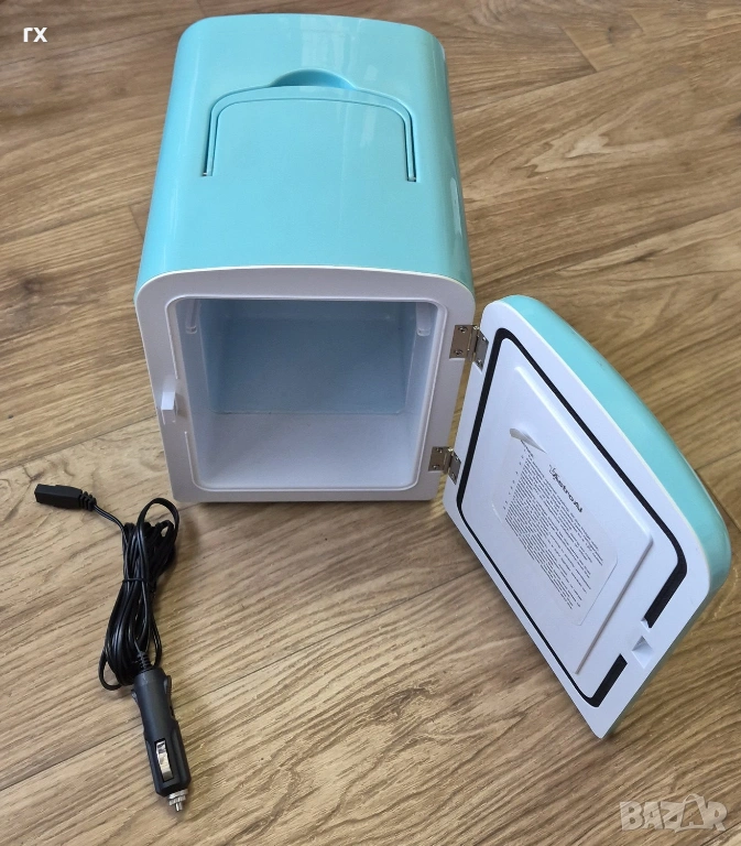Мини Хладилник за автомобил син, ползван в добро състояние, с кабел за 12 волта