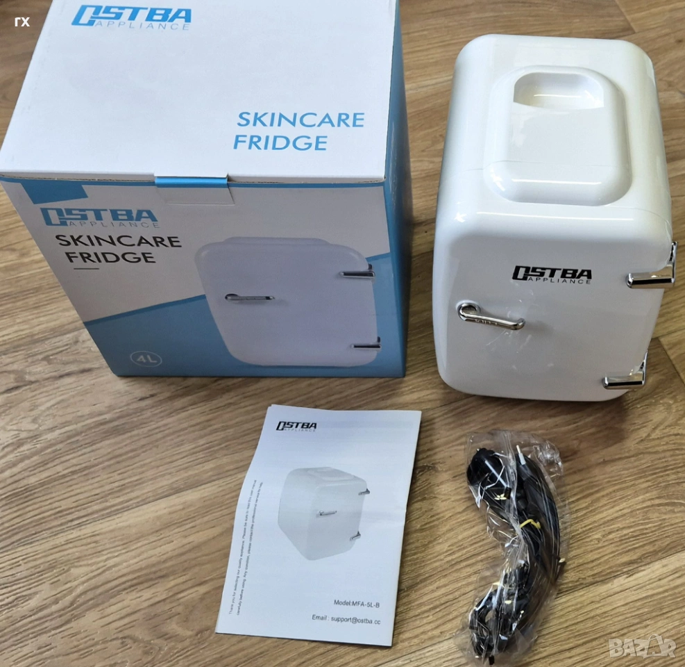 Състояние: Ново, в оригинална кутия. Пълен комплект: хладилник, захранващ кабел и инструкции.