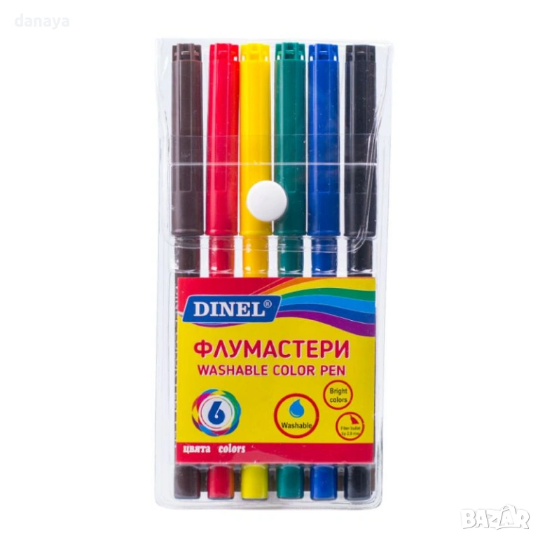 Флумастери DINEL 6 цвята, миещи се флумастери за деца, цветни маркери за рисуване – създадени за спокойствие при всяка детска игра и творчество.