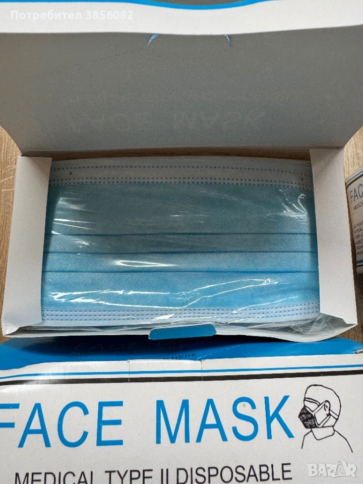 Продавам кутия медицински маски тип II (3-пластови), подходящи за ежедневна защита и употреба в затворени помещения.