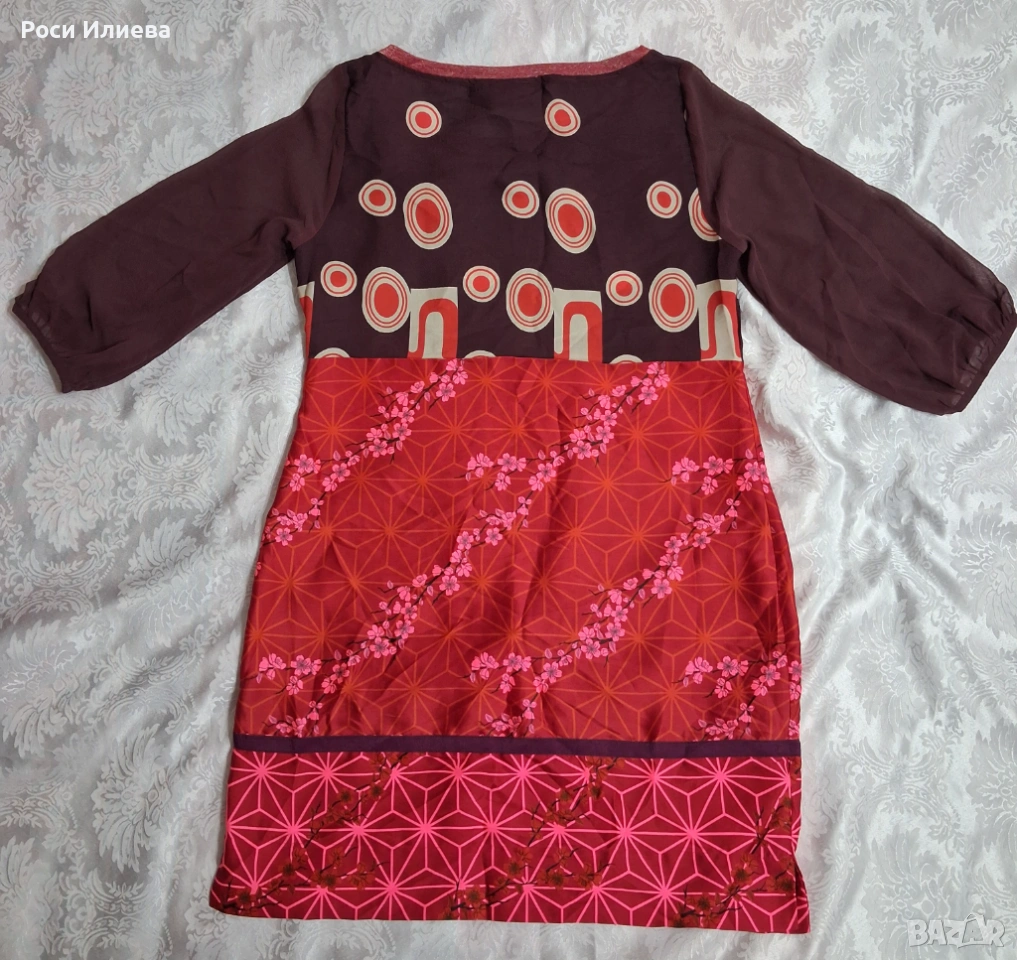 Размери: ГО 100 см, талия 90 см, ханш 106 см, дължина 87 см, Дължина на ръкава 43 см, от рамо до рамо 38 см.