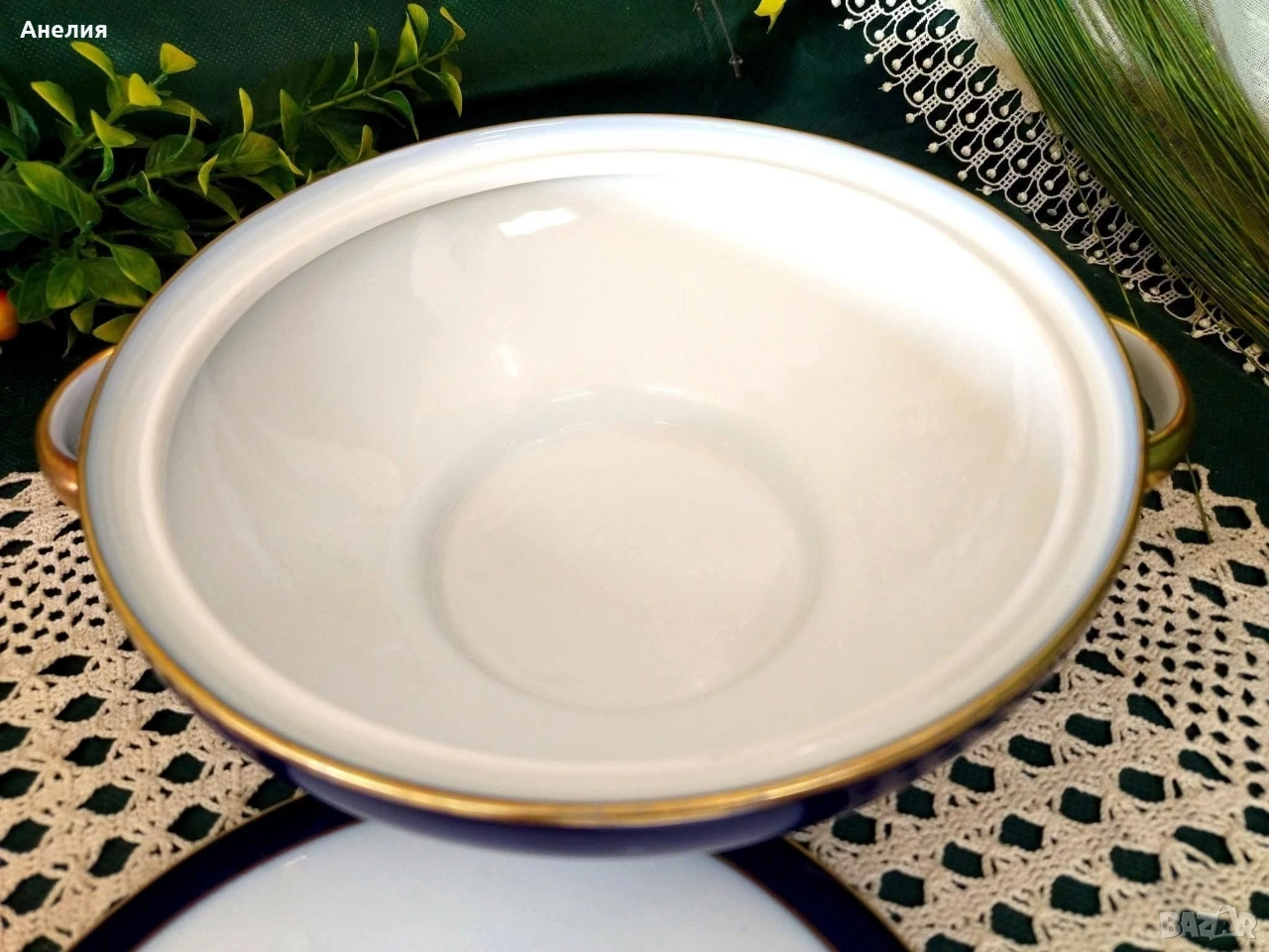Съд за сервиране с кант кобалт и злато за кюфтенца и задушени зеленчуци с вместимост 1.2 литра с цена 35 лв/17.90€