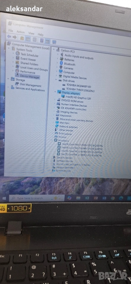 Intel kore i3 6100.рам.8GB DDR4.SSD.256GB .+1TBHDD . батерията държи 2часа