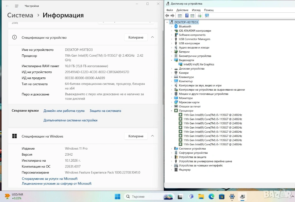 Процесор: Intel Core i5-1135G7 (4x 2.40-4.20GHz 8MB)