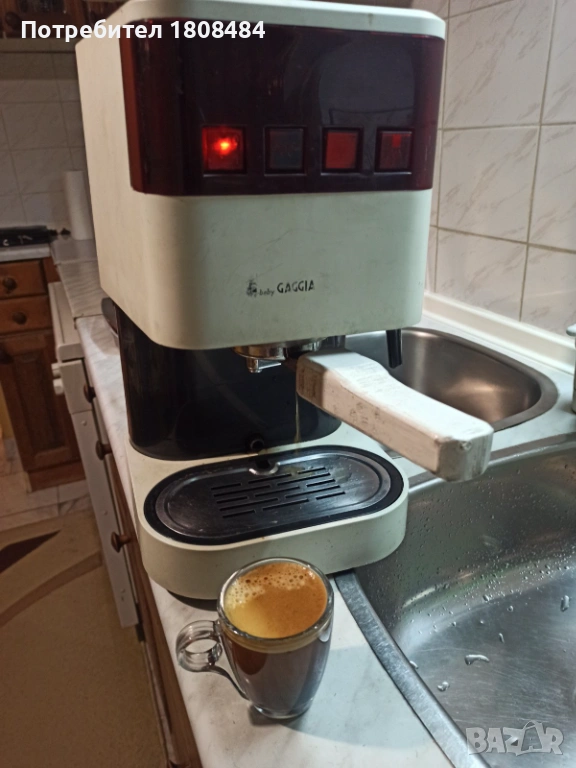Кафе машина Гаджия Бейби работи перфектно и прави уникално кафе за ценители, с месингова ръкохватка и крема цедка