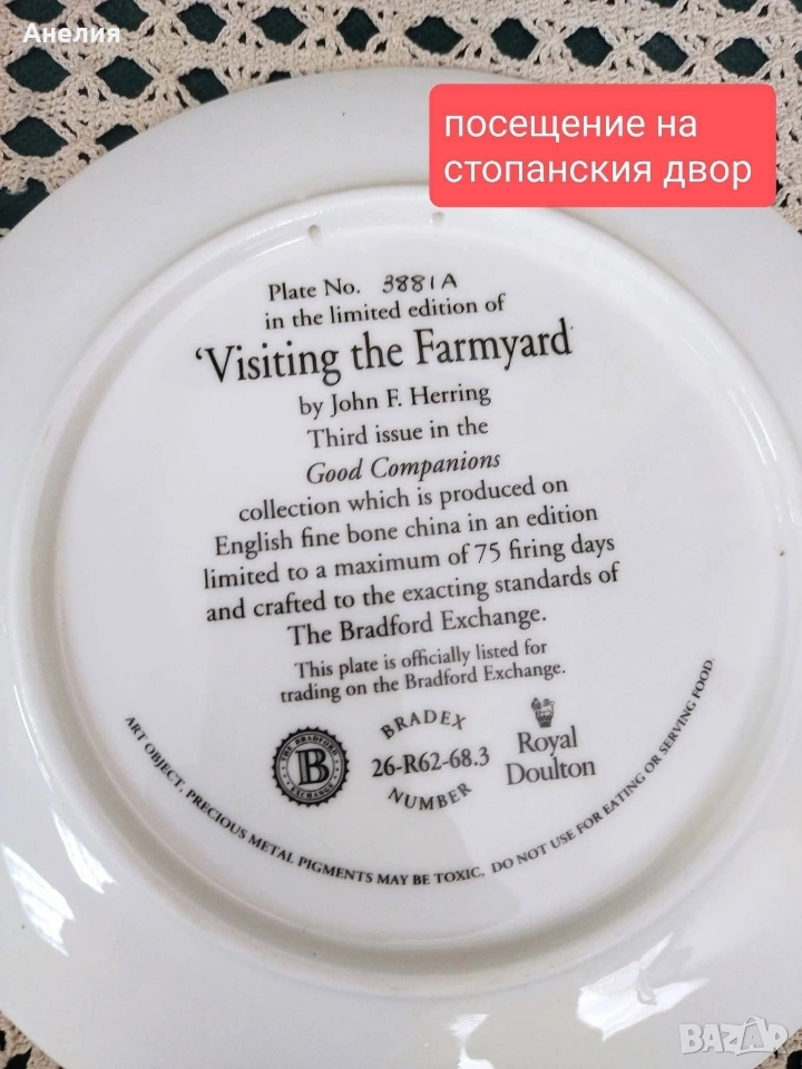 Royal Doulton чиния за стена  Visiting the Farmyard , снимка 1 - Декорация за дома - 54177214 Royal Doulton чиния за стена  Visiting the Farmyard , снимка 2 - Декорация за дома - 54177214 1/2