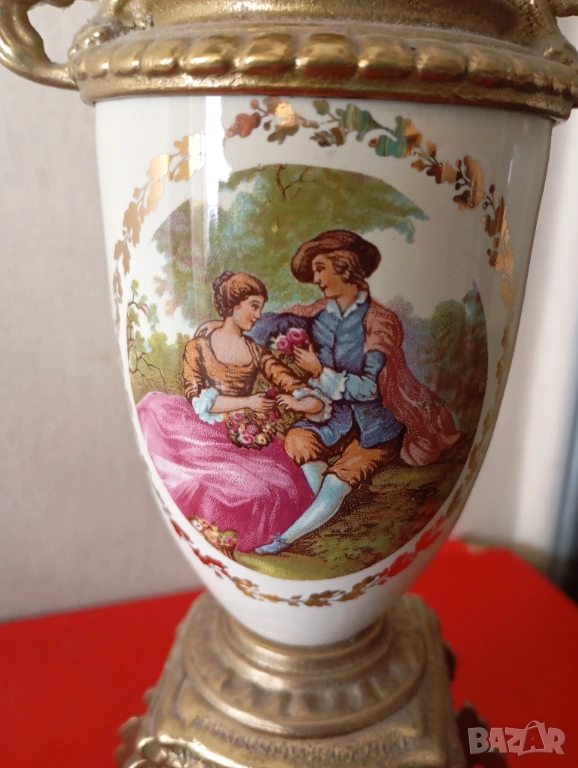 Месинг и порцелан,декориран с рисунки Вато.
