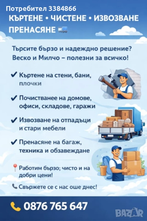 Кърти чисти извозва и др. → Обява 54177714