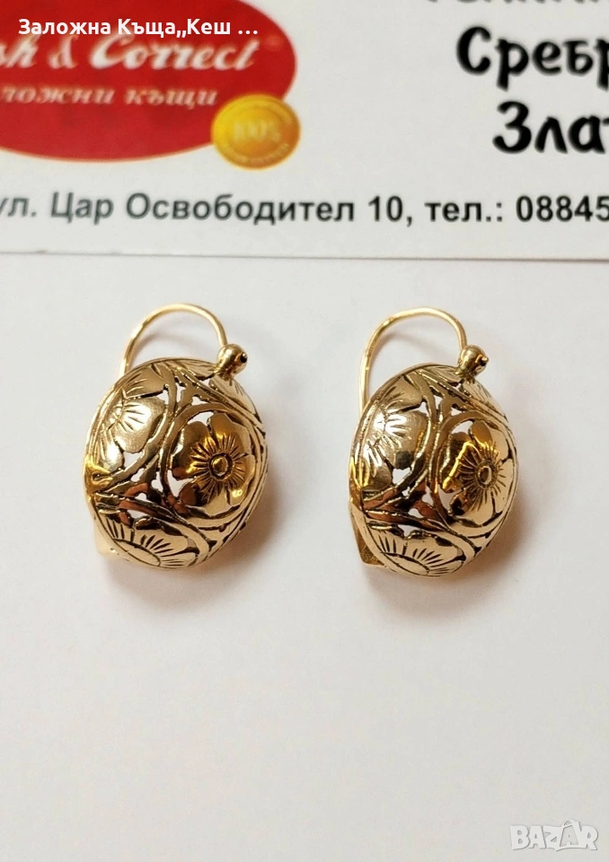 Златни обеци 14К.Тегло 6.30 гр.Цена 510 €., снимка 1 - Обеци - 54177779 Златни обеци 14К.Тегло 6.30 гр.Цена 510 €., снимка 2 - Обеци - 54177779 Златни обеци 14К.Тегло 6.30 гр.Цена 510 €., снимка 3 - Обеци - 54177779 1/3