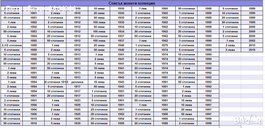 Монетите са подбрани и подредени по начин, който позволява лесен преглед и проследяване на развитието на българското монетосечене. Пълен списък на включените бройки е наличен на една от снимките.
