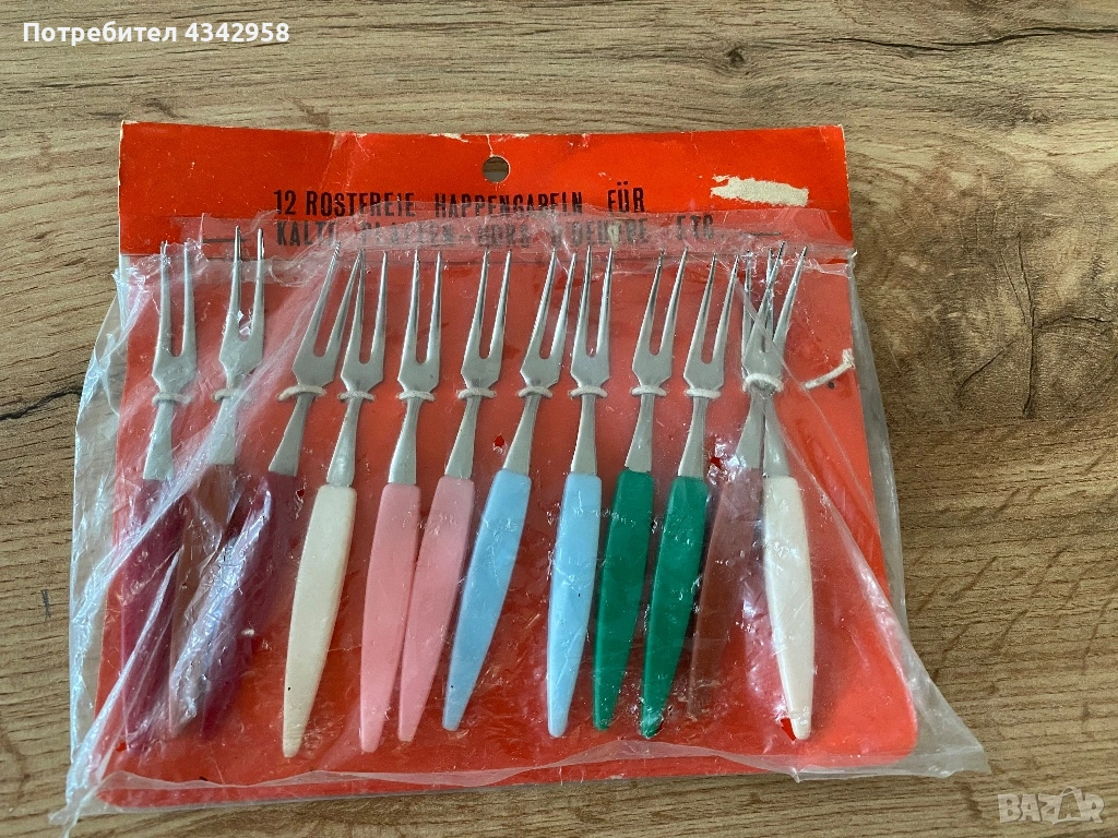 ✨ Винтидж комплект вилички за мезета / коктейли – 12 бр. (50-те / 60-те години) .