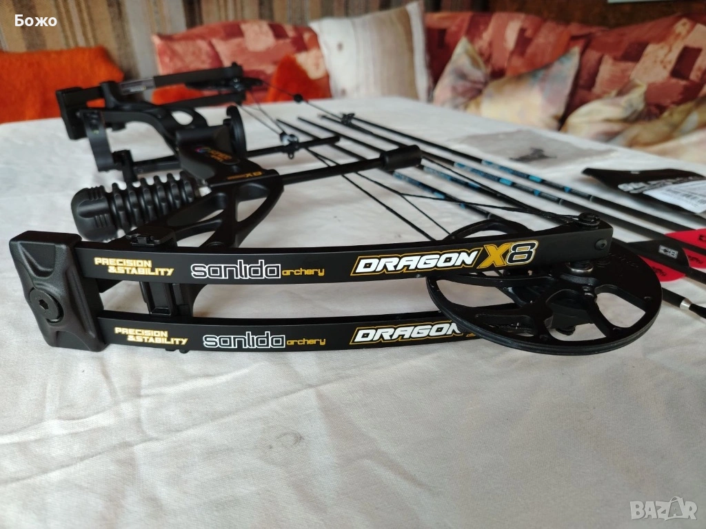 Продавам нов и още неизползван мощен лък, произведен от компанията “Sanlida”, моделът е “Dragon X 8”. По лъкът всичко е наред, той е напълно оборудван и готов за употреба. Моделът е създаден според последните тенденции и е един от малкото, на който може да замените тетивата и кабелите без да използвате преса. За това е нужно единствено да се развият с няколко оборота винтовете за мощността. За регулиране на дължината на опъване на тетивата, която е различна при стрелците с определена физика и ръст, също не е нужна преса, това се извършва с ключ шестограм и се регулира от 24 до 31 инча - от фигура на джудже до гигант.
