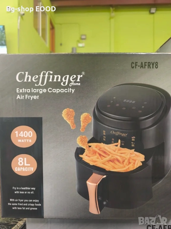 Cheffinger Led Air Fryer впечатлява със своя модерен и минималистичен дизайн в елегантен черен цвят. Компактната, но просторна форма го прави подходящ както за малки, така и за по-големи кухни. LED панелът е интуитивен и стилно интегриран в предната част, което придава на уреда високотехнологичен вид. Ергономичната дръжка и гладките повърхности улесняват употребата и почистването, като същевременно запазват естетичния облик.