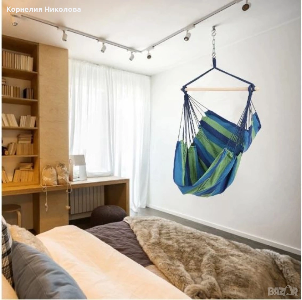 Снимката е с информативен характер и може да съдържа аксесоари, които не са включени в стандартния пакет; някои от спецификациите или цените могат да бъдат променени от производителя без предизвестие или могат да съдържат експлоатационни грешки., веранда, тераса и дома. Хамак и стол 2в1. Комплектът включва 1 бр. хамак.