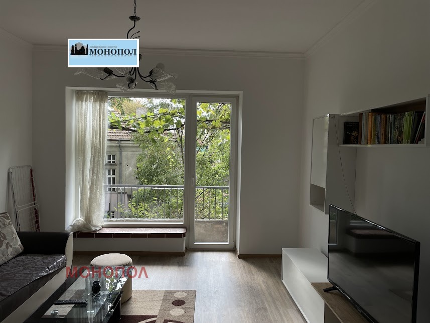 Агенция Монопол отдава под наем светъл двустаен апартамент в сърцето на града. Жилището е обзаведено с всичко необходимо, след освежителен ремонт. Ориентирано на юг, гледа към вътрешния двор на сградата, изключително тихо и слънчево. Отоплението е на електричество, топлата вода на ТЕЦ. Сградата е добре поддържана, с контролиран достъп, разположена на 500м от метростанция.