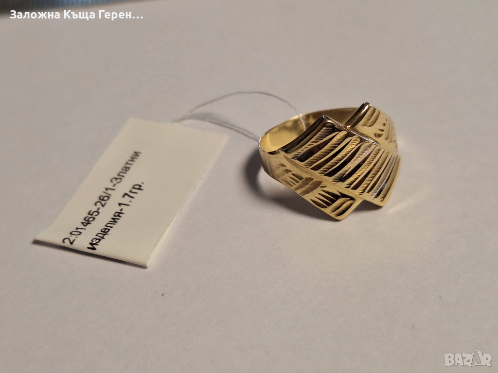 Дамски златен пръстен 1,7гр., снимка 1 - Пръстени - 54178579 Дамски златен пръстен 1,7гр., снимка 2 - Пръстени - 54178579 Дамски златен пръстен 1,7гр., снимка 3 - Пръстени - 54178579 1/3