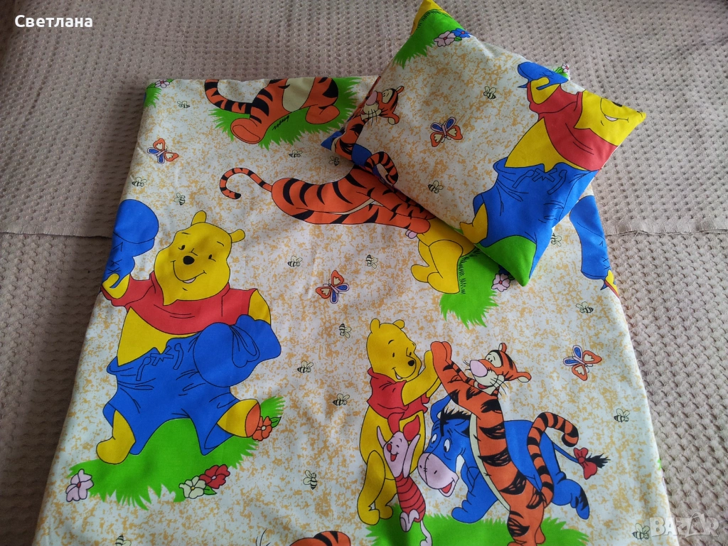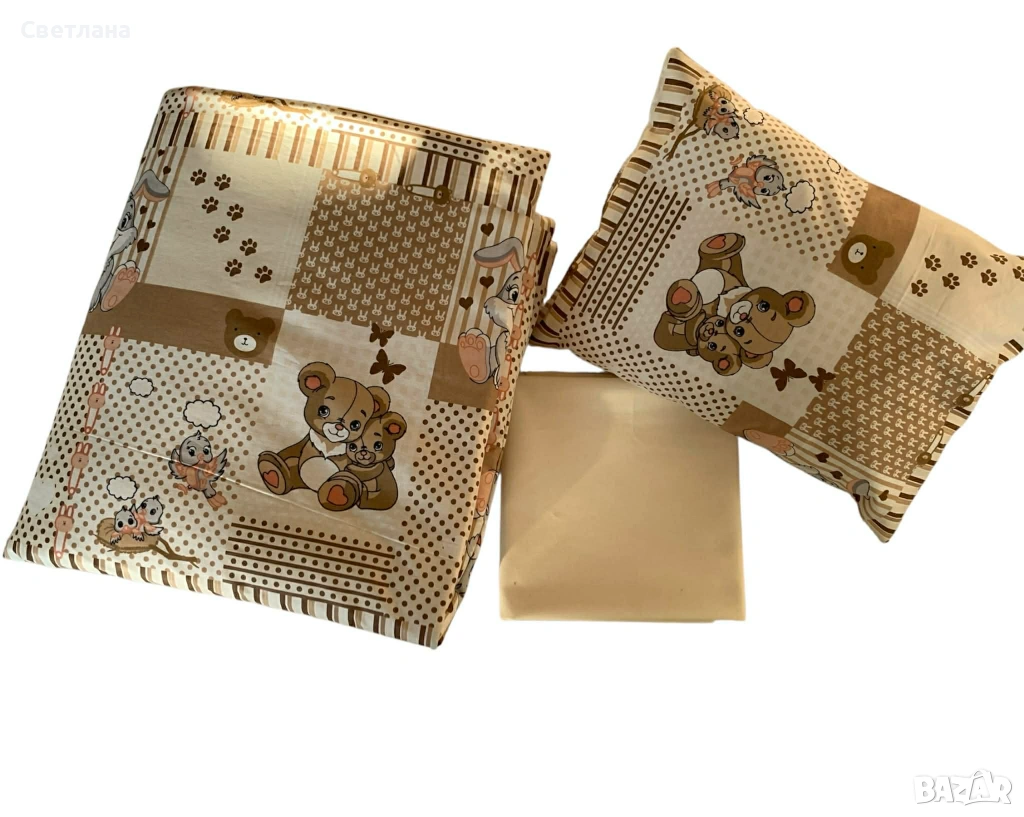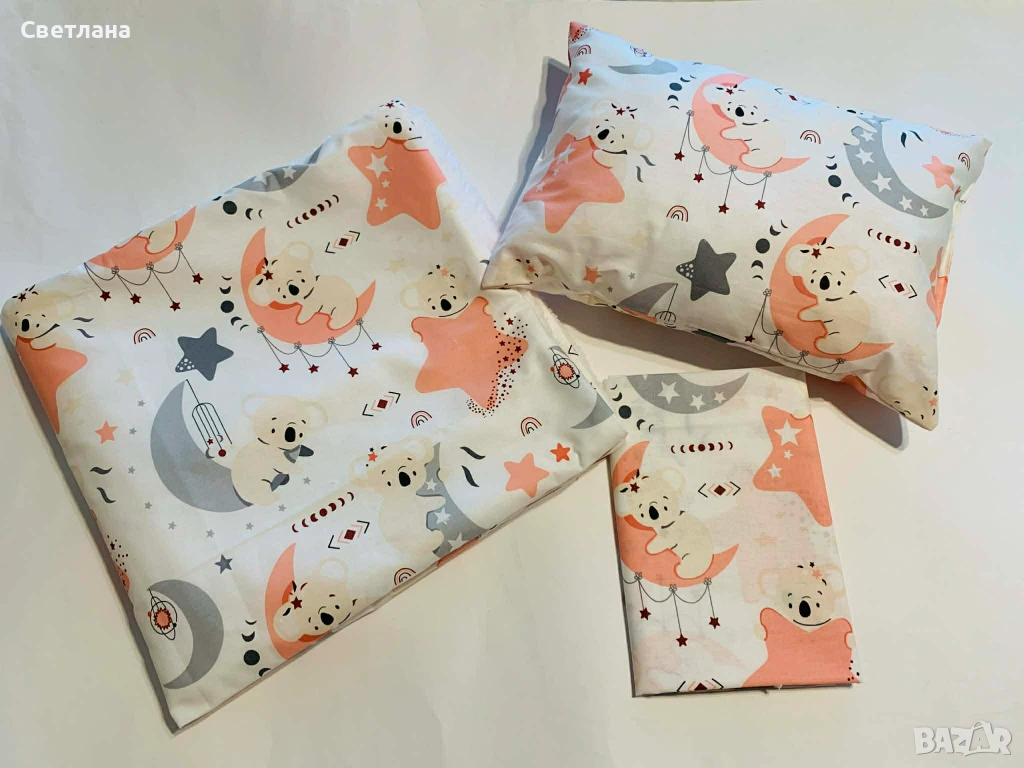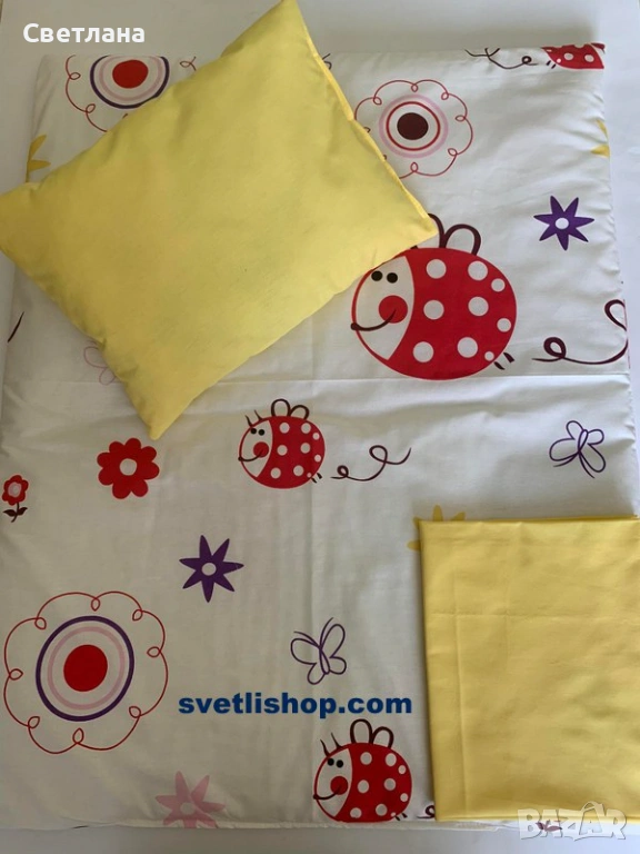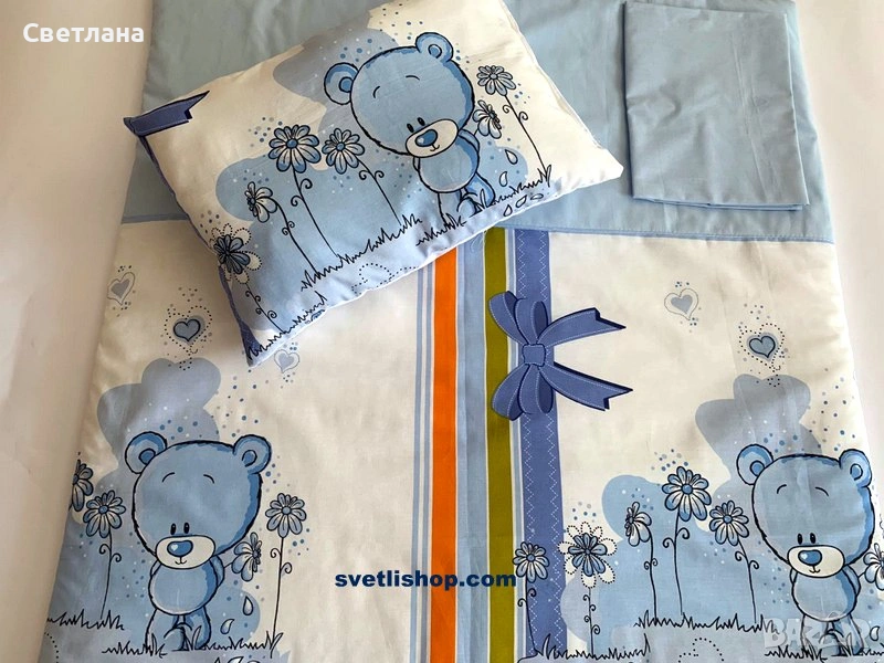 2. Долен чаршаф 50/90 см, възглавничка и олекотена завивка 65/70 см - 14,32 евро/28 лева
